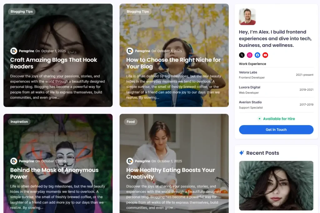 - This layout is best for visual, magazine-style archives where each post card looks like a cover or hero tile.