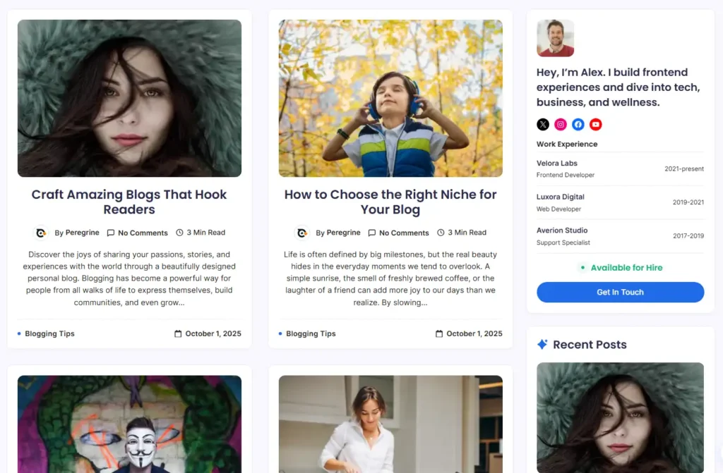 By combining the Layout, Post Meta, Read More button, and Excerpt options, you can design archive pages that match your blog’s style—from clean, minimal grids to rich magazine-style lists with detailed meta and strong imagery.