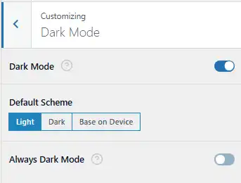 - When enabled, compatible elements of your site will automatically switch between light and dark styles based on the settings below or user choice (if you expose a toggle in the header).