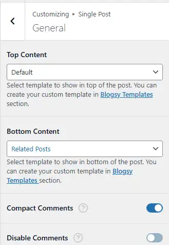- Go to Appearance → Customize → Single Post → General.