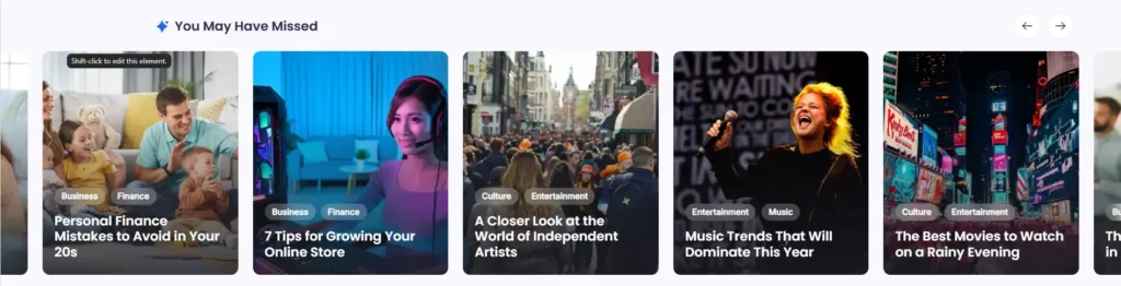 • Navigation arrows let visitors scroll through multiple recommended posts.