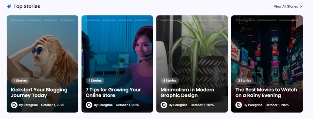 Visitors can click a story card to navigate to that category/archive and explore all posts related to that topic, making it a powerful way to promote your key content pillars on the homepage.